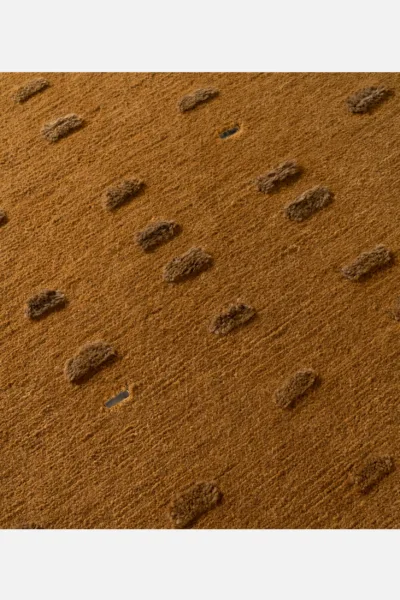 Irregular lines of ever-more-blossoming high-pile alpaca ombre tufts, studded with polished inlays. Conceived in a late night on-loom experiment.