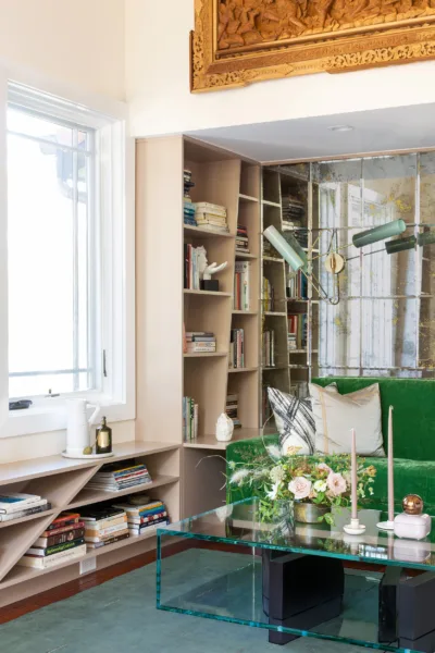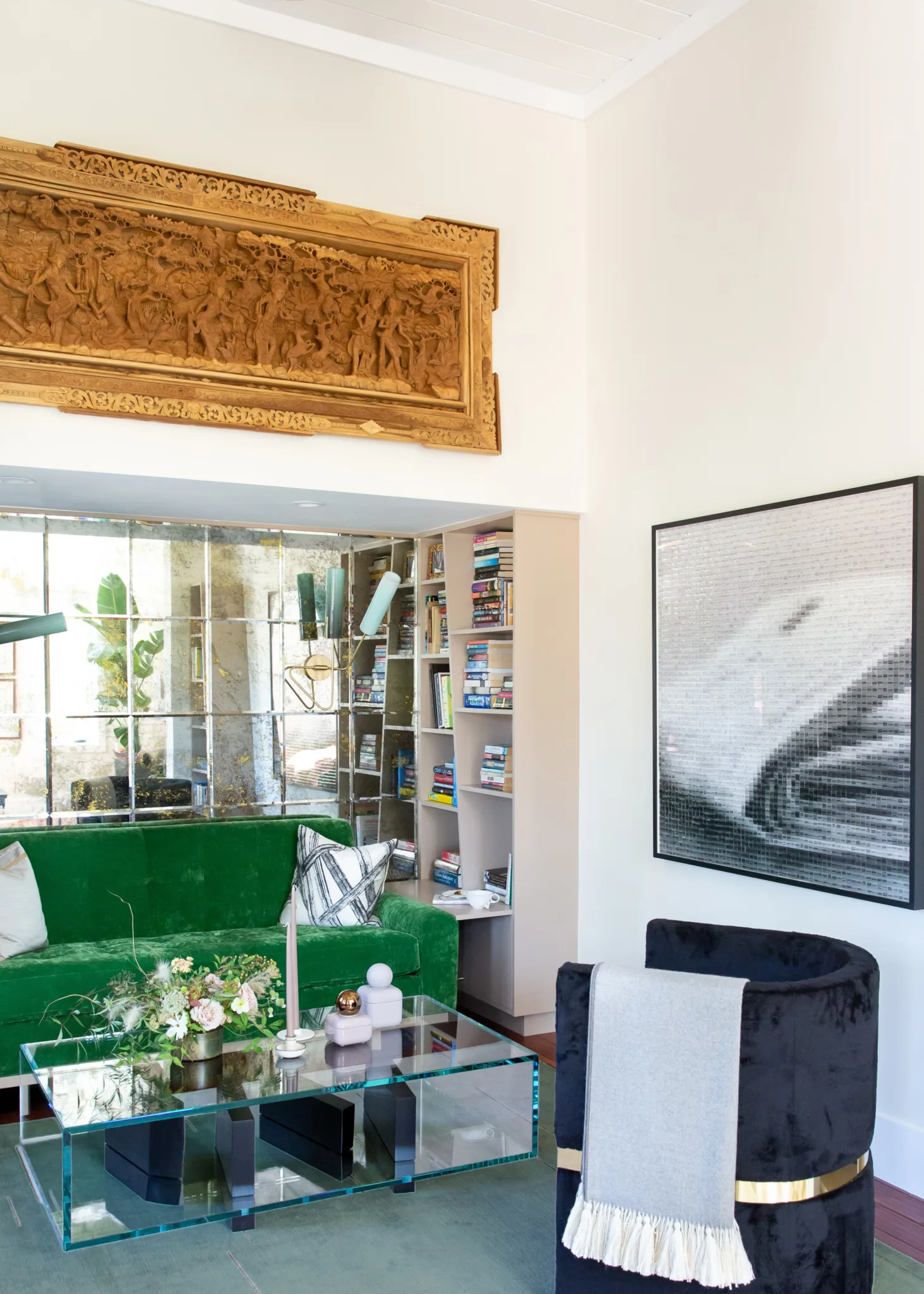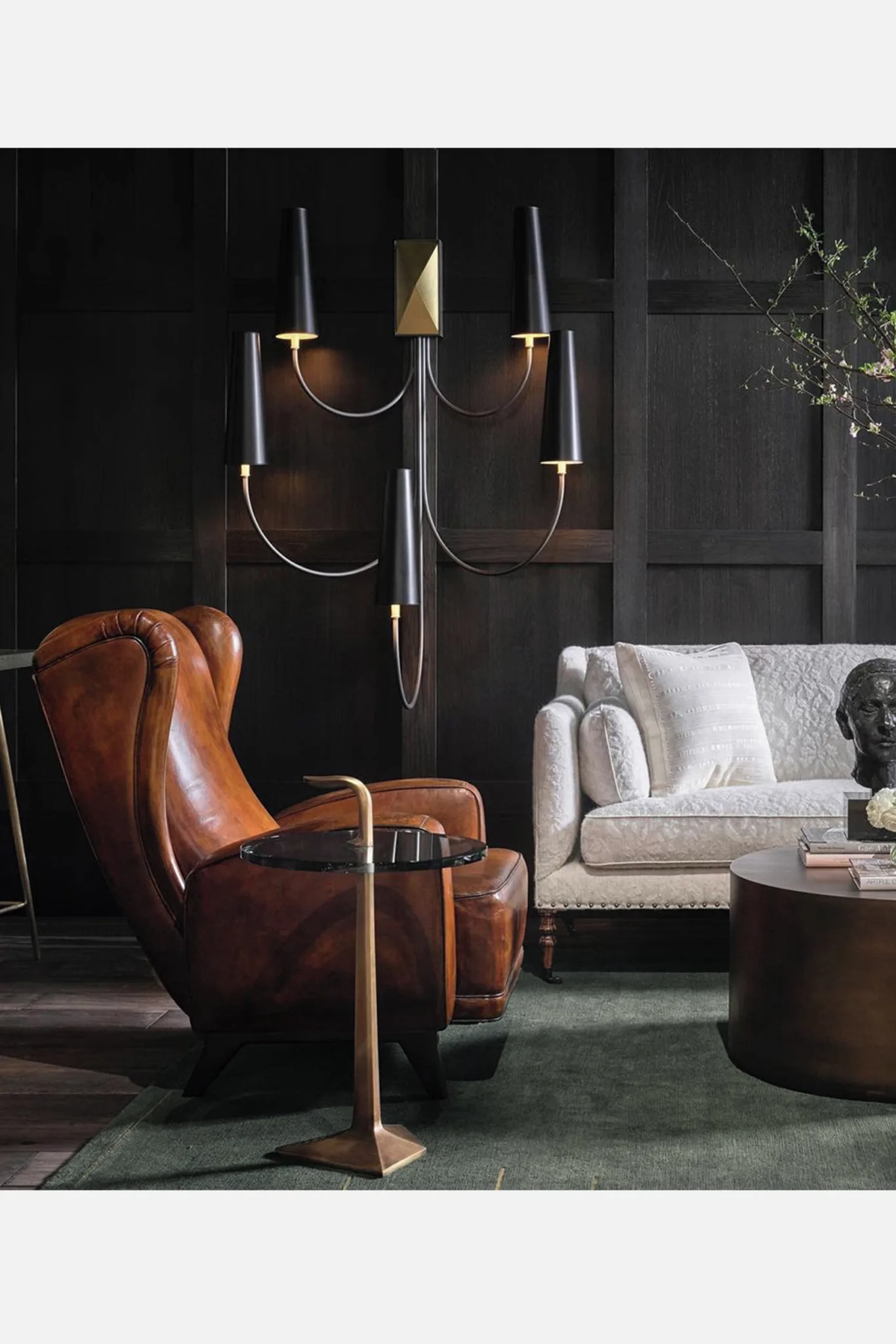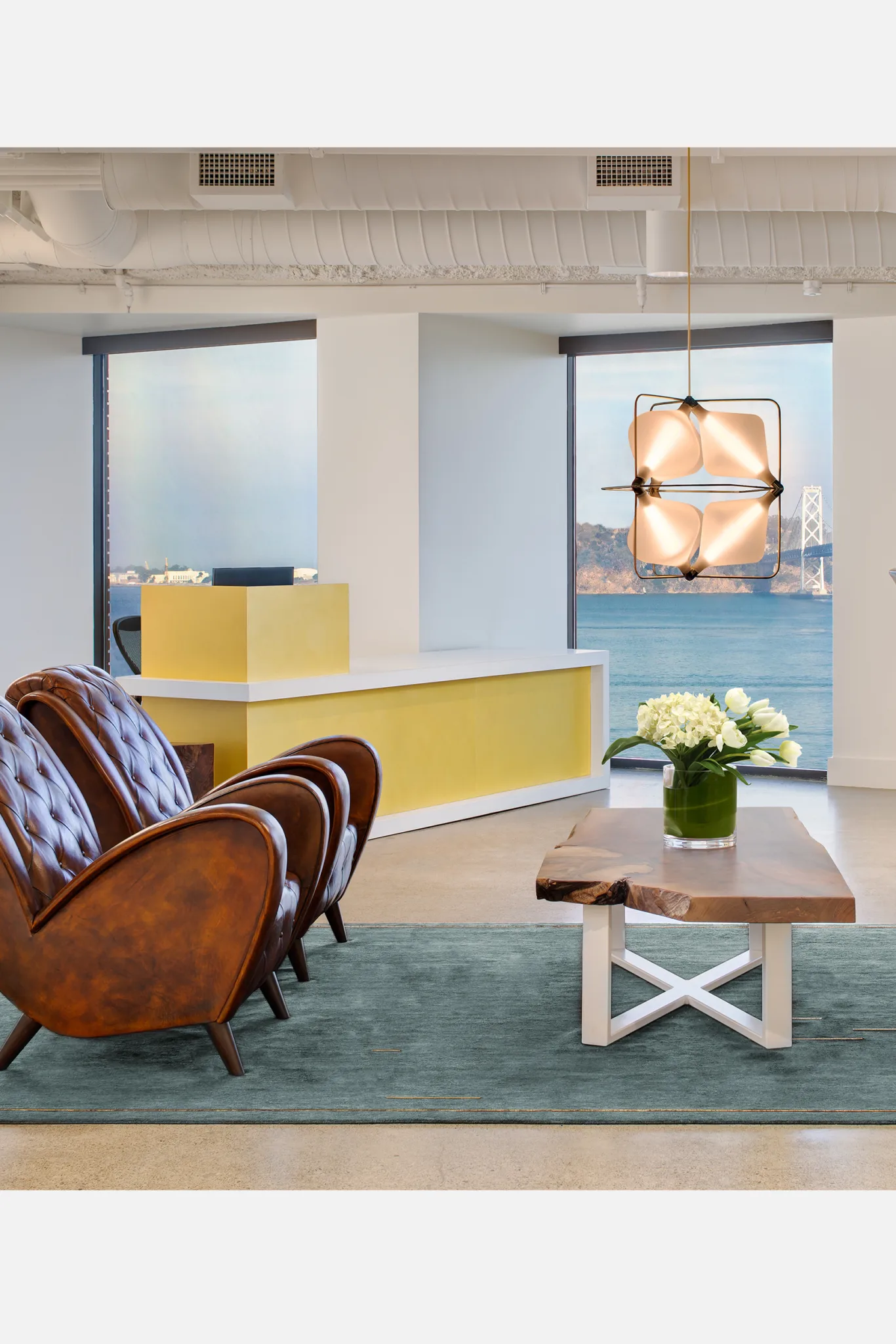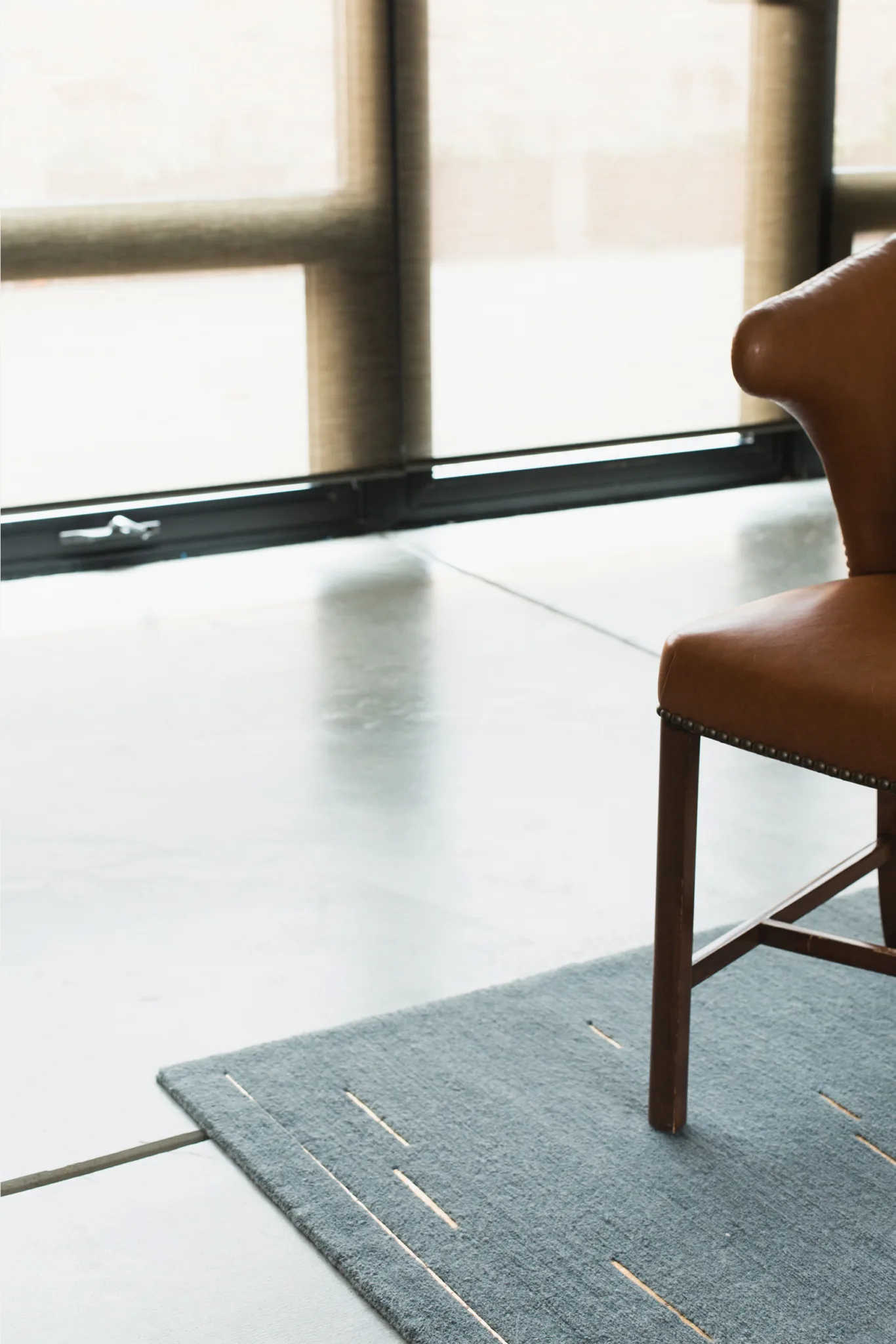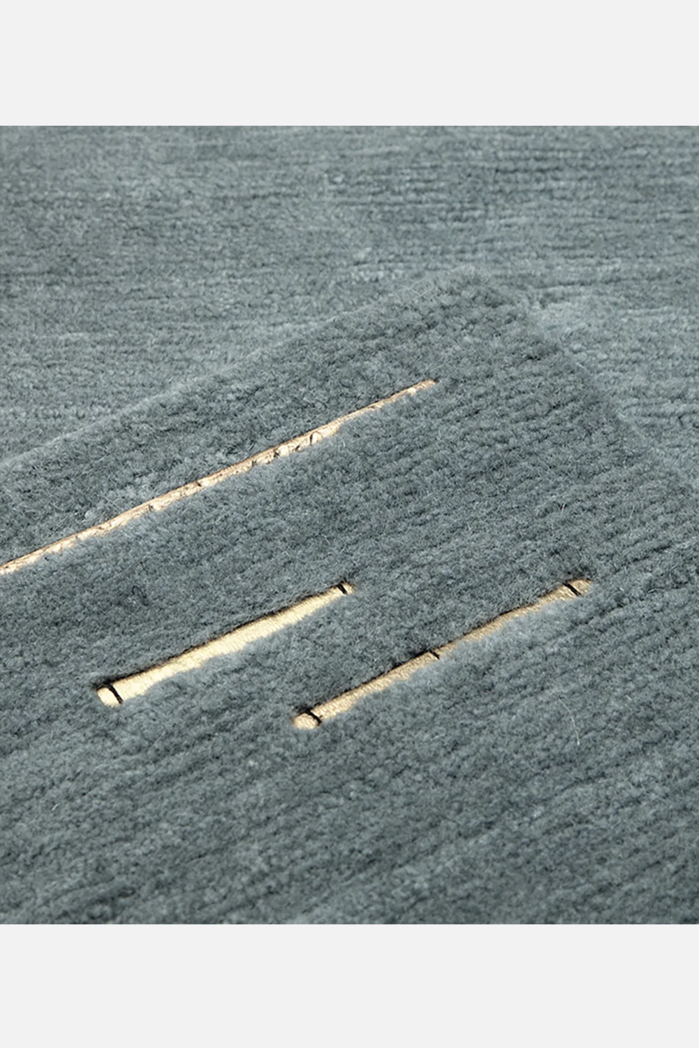 Hand-scraped metal bars embedded in pile comprised of hand-spun Alpaca, Mohair, and Merino yarn, and capped with carved metal rods.