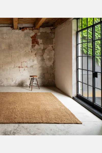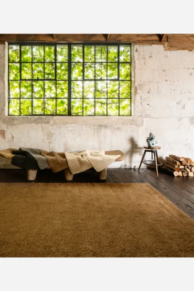 Handspun yarns in a sumptuous weave accentuate merino’s natural texture, presented in exuberantly unshorn pile.