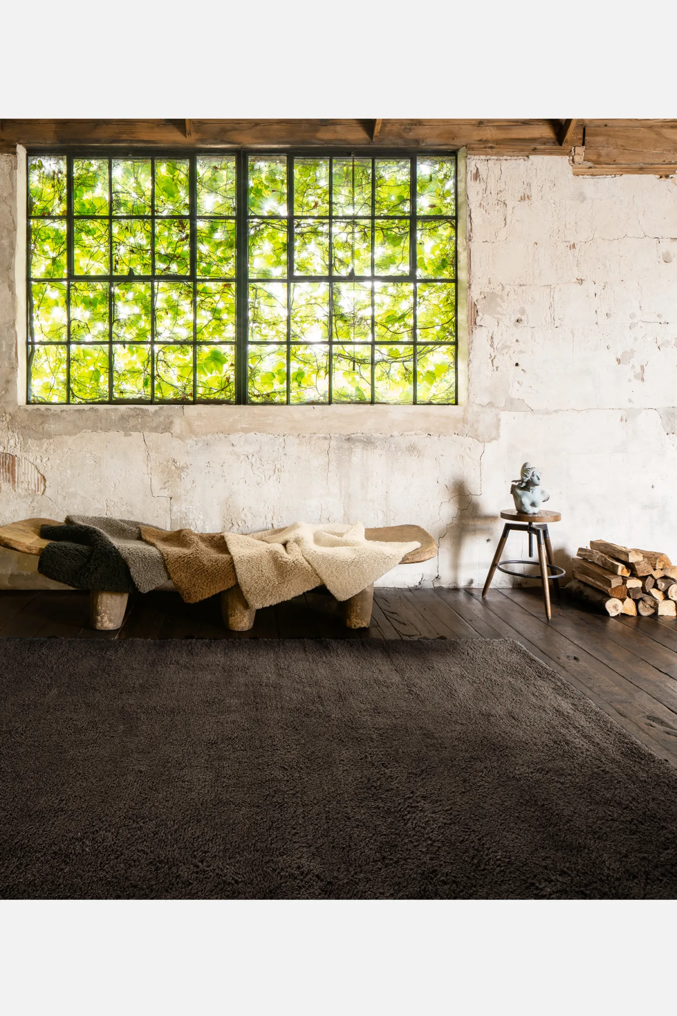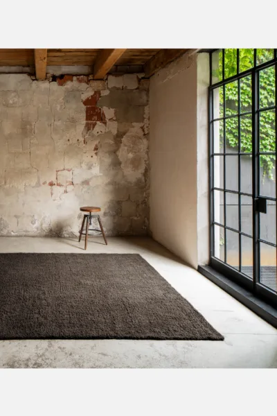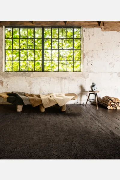 Handspun yarns in a sumptuous weave accentuate merino’s natural texture, presented in exuberantly unshorn pile.