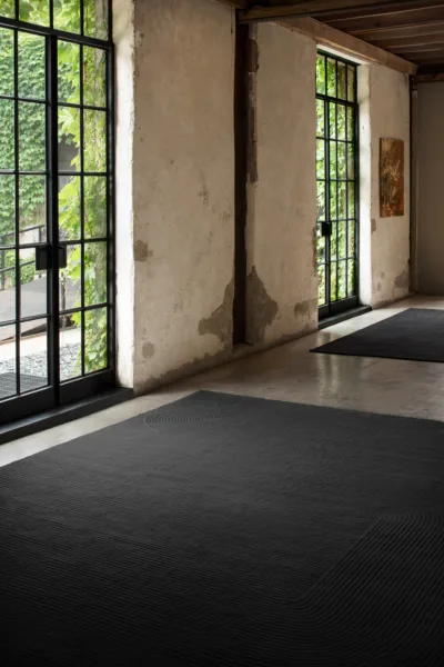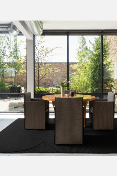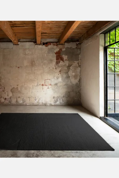 Commanding linear rows and soft curves are accented by the negative space of soumak edges.