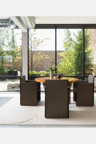 Commanding linear rows and soft curves are accented by the negative space of soumak edges.