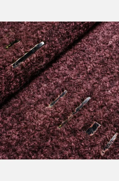 Strands of highly polished inlays nestled in a matte pillow of bouclé. Originally conceived for a waterfront home in the Great Lakes region.