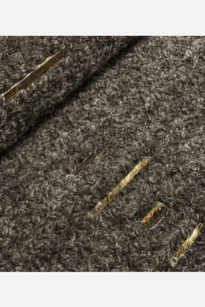 Strands of highly polished inlays nestled in a matte pillow of bouclé. Originally conceived for a waterfront home in the Great Lakes region.