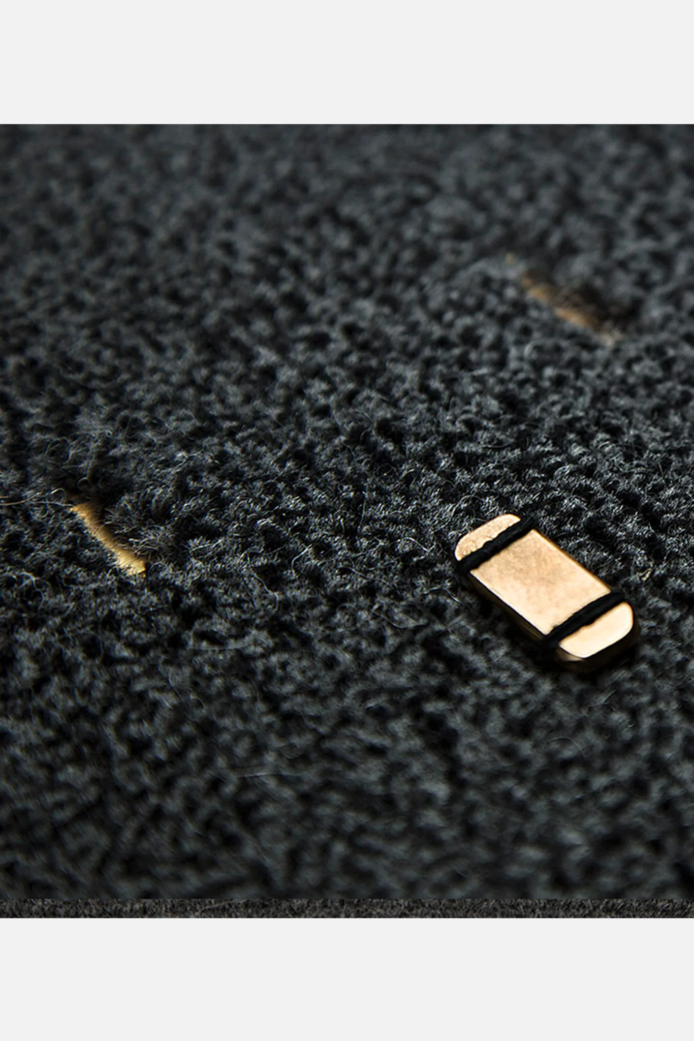 Alpaca pile field with gridded design of hand-polished metal bars. An analogue reflection of the inherent grid structure underpinning all pile textiles.