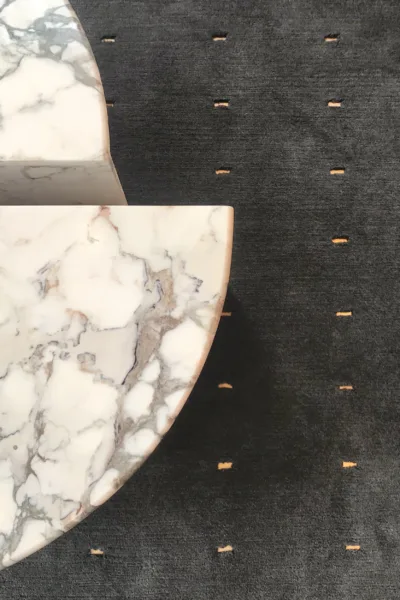 Alpaca pile field with gridded design of hand-polished metal bars. An analogue reflection of the inherent grid structure underpinning all pile textiles.