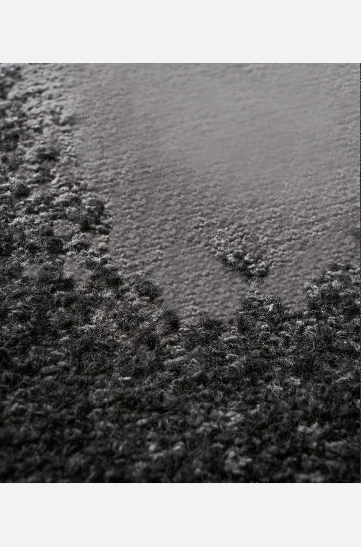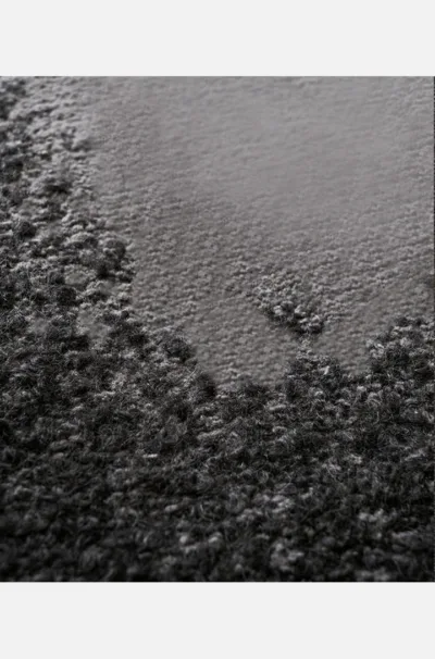 A painterly graphic of just two colors, Smear uses the irregular surface texture of bouclé with linear yarn to turn the ancient digital art of weaving analog. Originally conceived for wine cellar in the South.