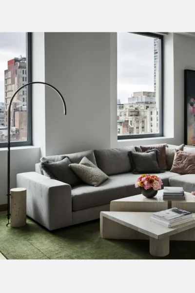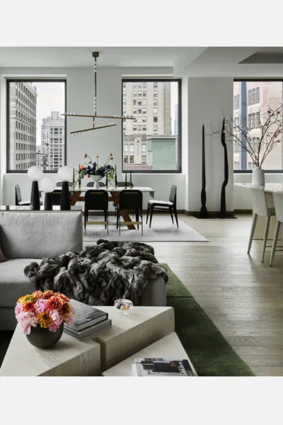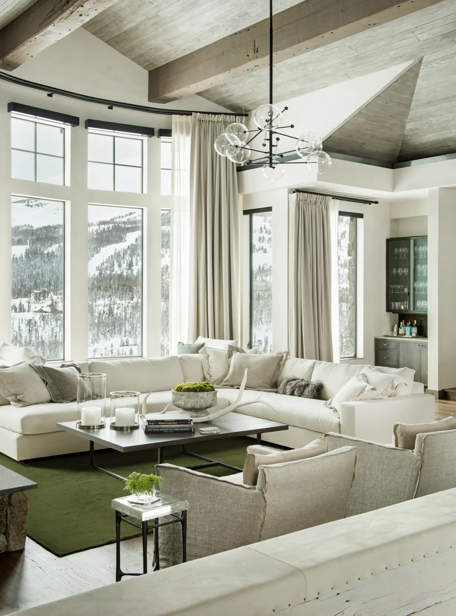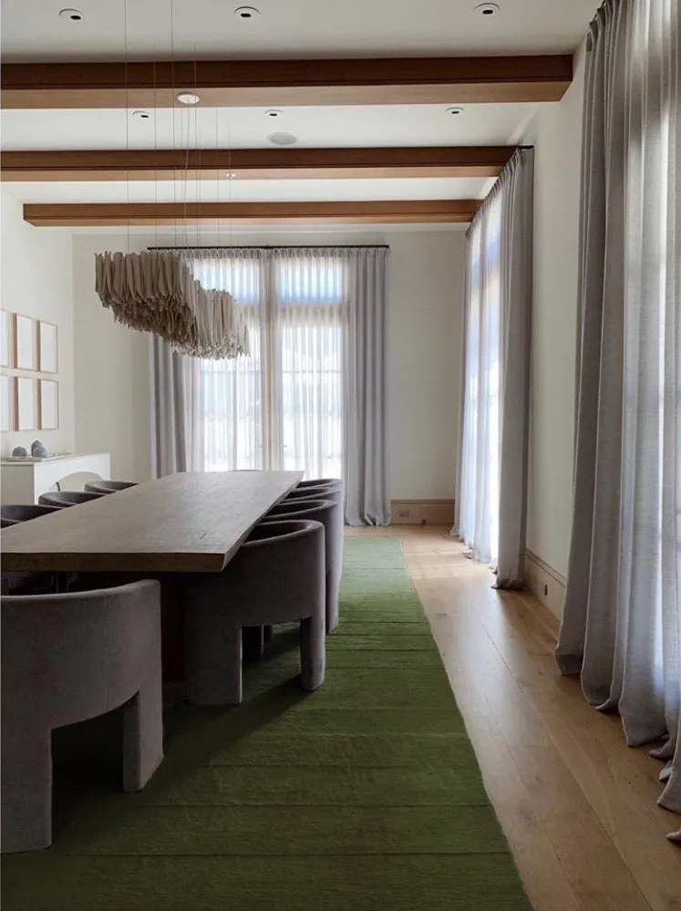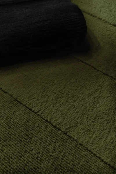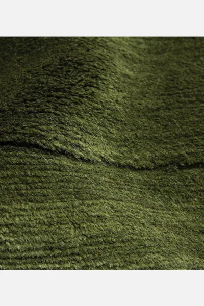 Subtly graduated hand-spun Suri Alpaca pile which ascend and descend at prescribed intervals.